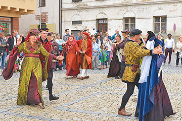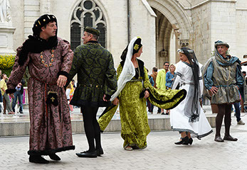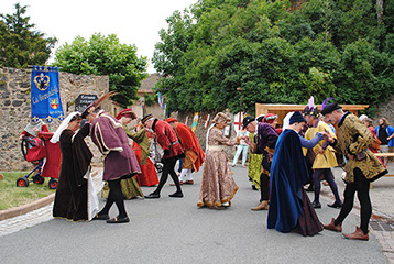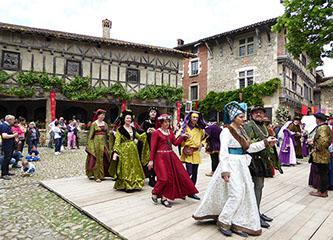 Si le Moyen Age est l’époque de la féodalité avec ses rudes guerres entre seigneurs, c’est aussi le temps où trouvères et troubadours, ménestrels et jongleurs prônent une civilisation plus raffinée. L’amour courtois conduit le chevalier à honorer sa dame de cœur en remportant joutes et tournois. Lors des fêtes religieuses ou profanes, musique et danse animent les campagnes comme les châteaux-forts. Les villageois fêtent le mois de mai par des rondes, caroles et farandoles tandis qu’à la cour, notamment à la cour des ducs de Bourgogne, se développe la pratique codifiée des danses en couples.